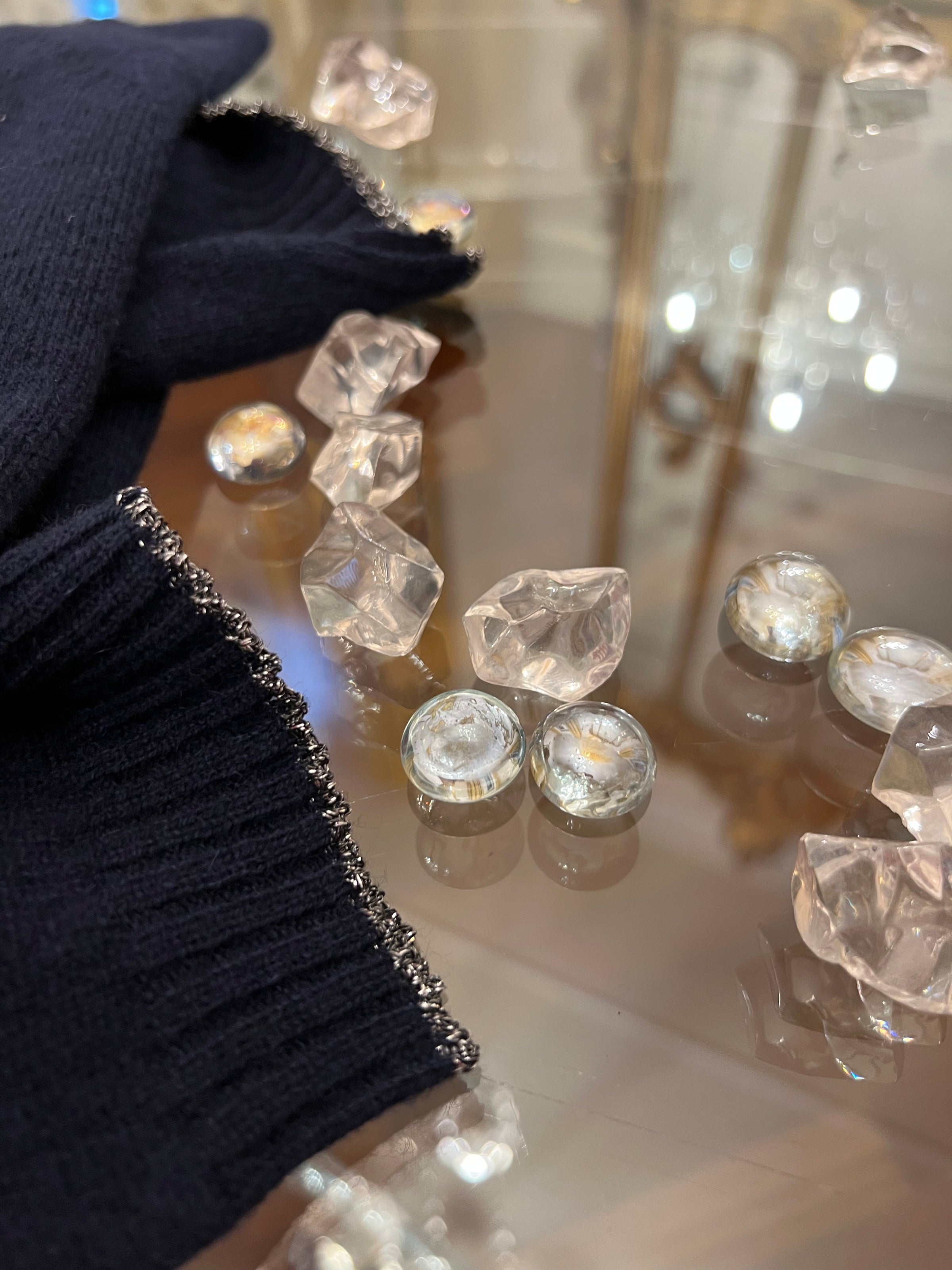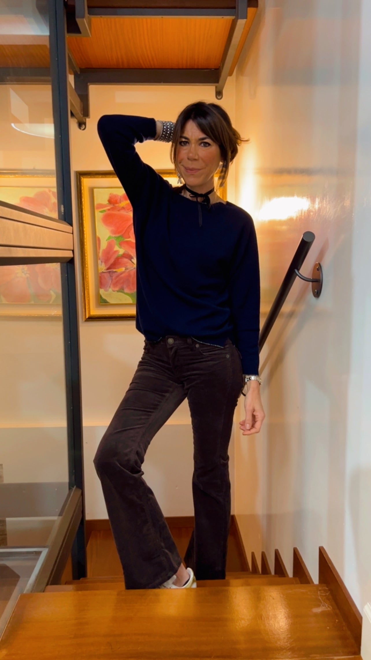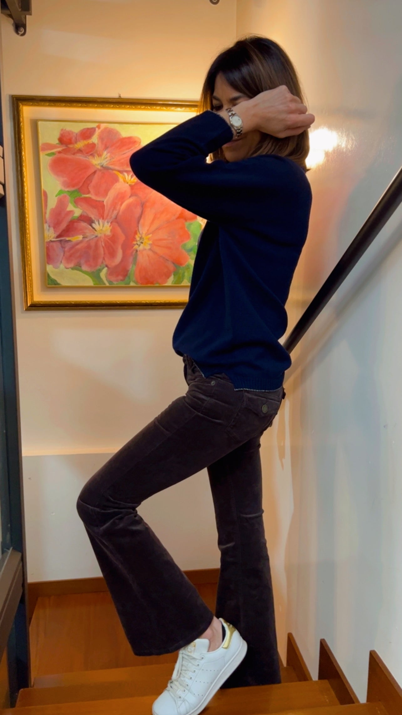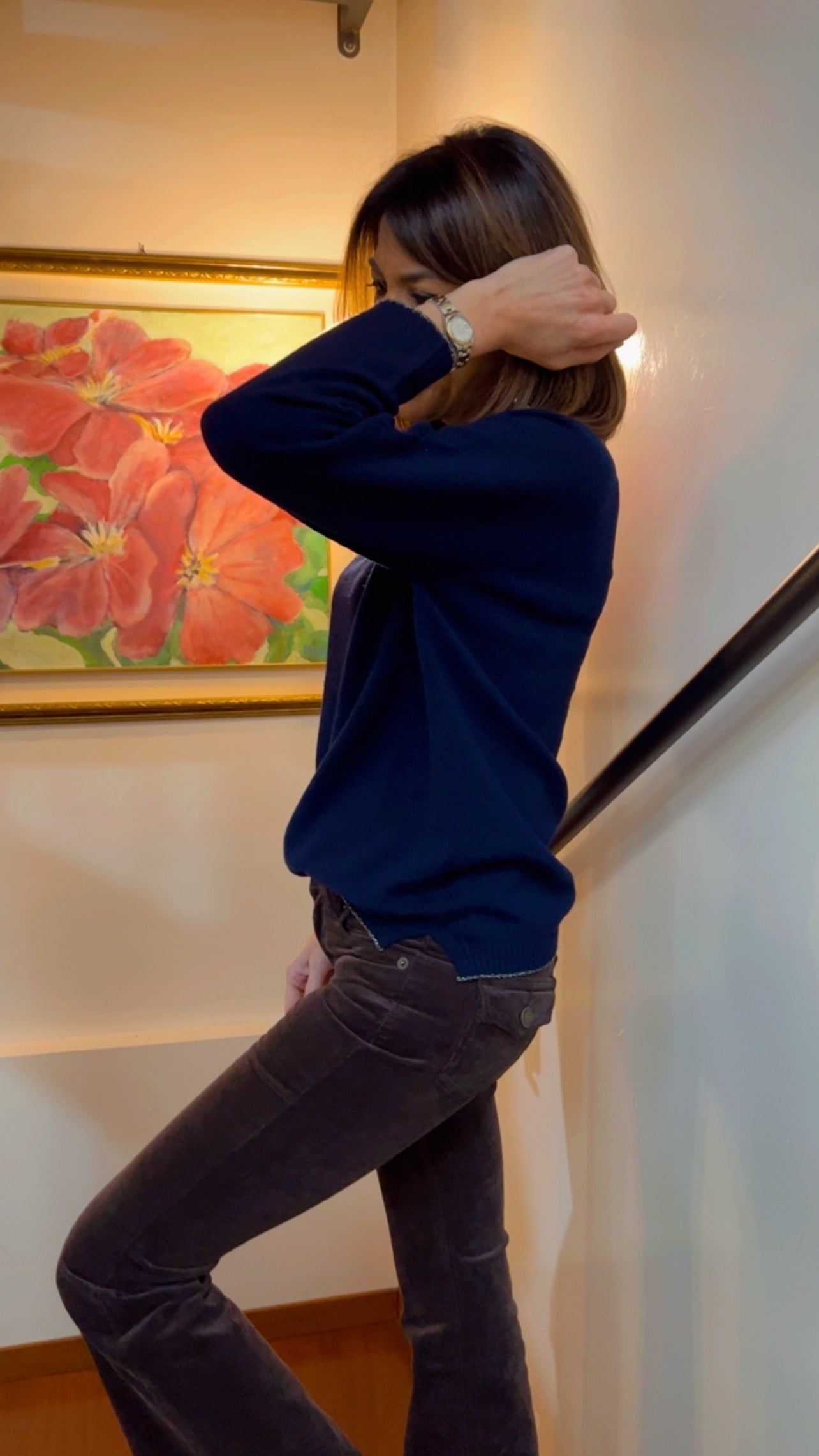 Maglia girocollo in puro cashmere con profilo a contrasto in lurex