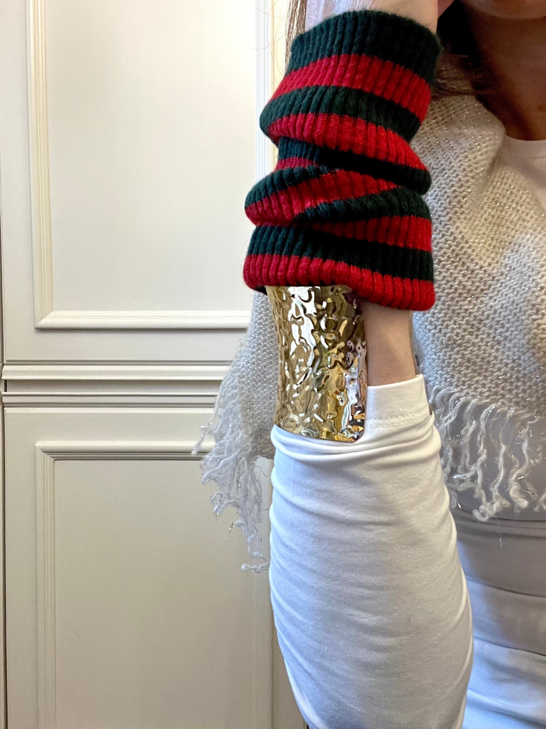 Il POLSINOTTO si posiziona sopra alle maniche della maglia, lascialo uscire dalla giacca, dal cappotto. Si piega a metà..et voilà ecco un polsino esclusivo.