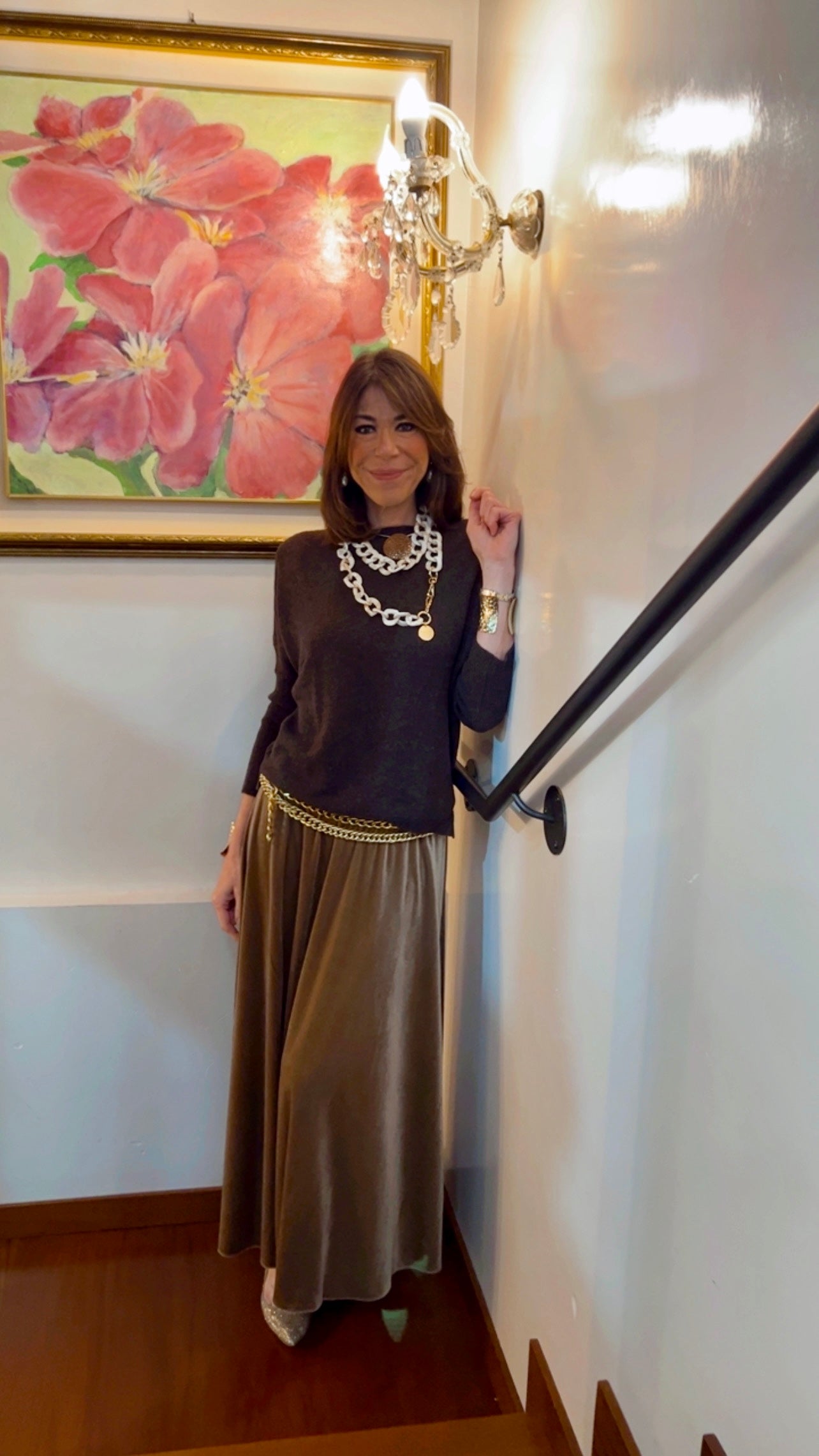 Indiscutibilmente chic! Abbinalo alla gonna di velluto beige ♥️