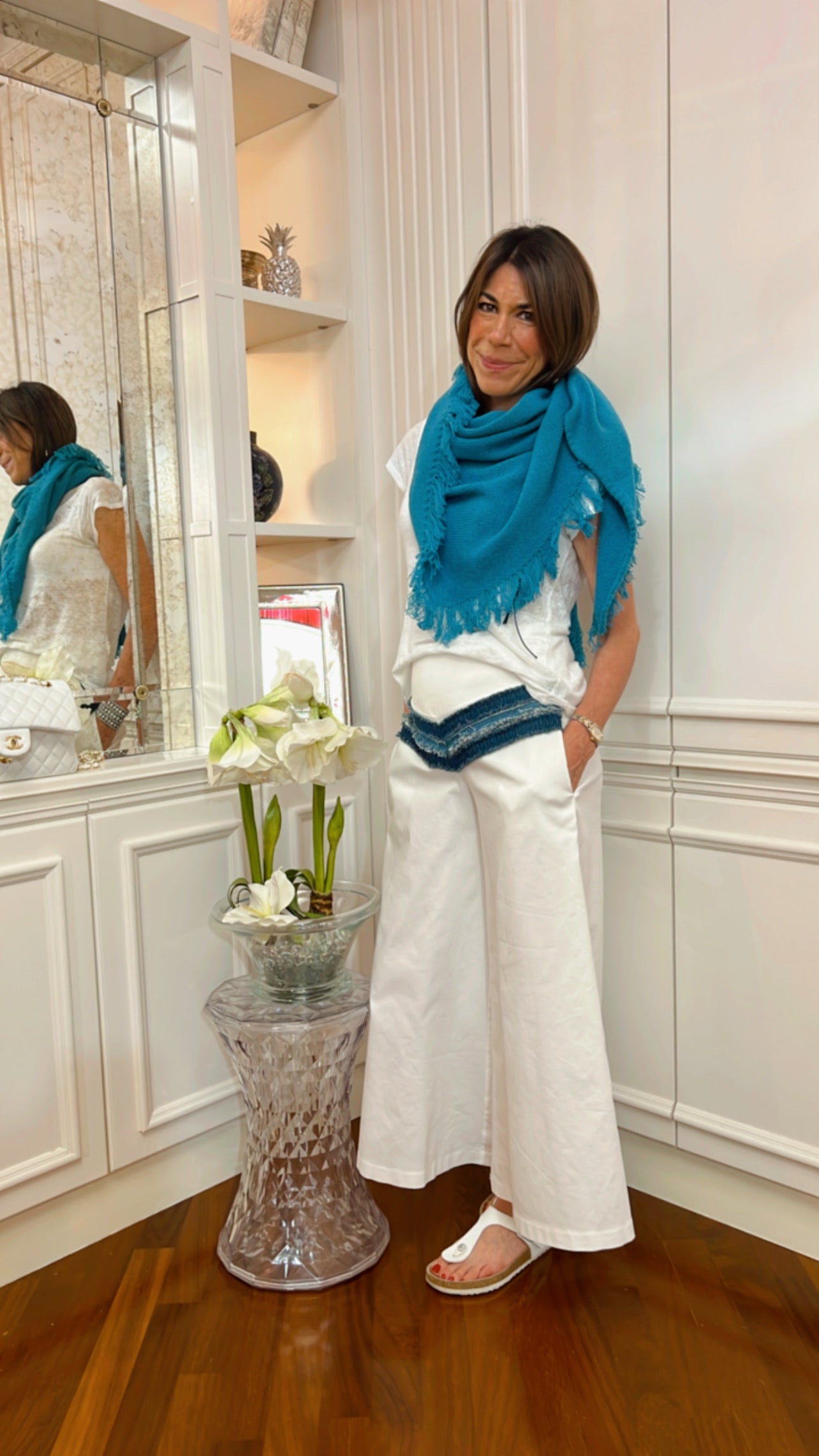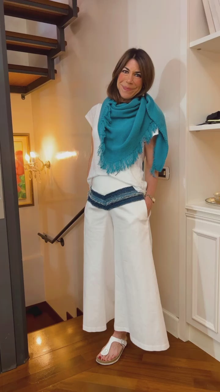 Lo scialle GRUNGE frange frisè ZAFFIRO | 100% CASHMERE - Spedizione a partire dal 6 aprile