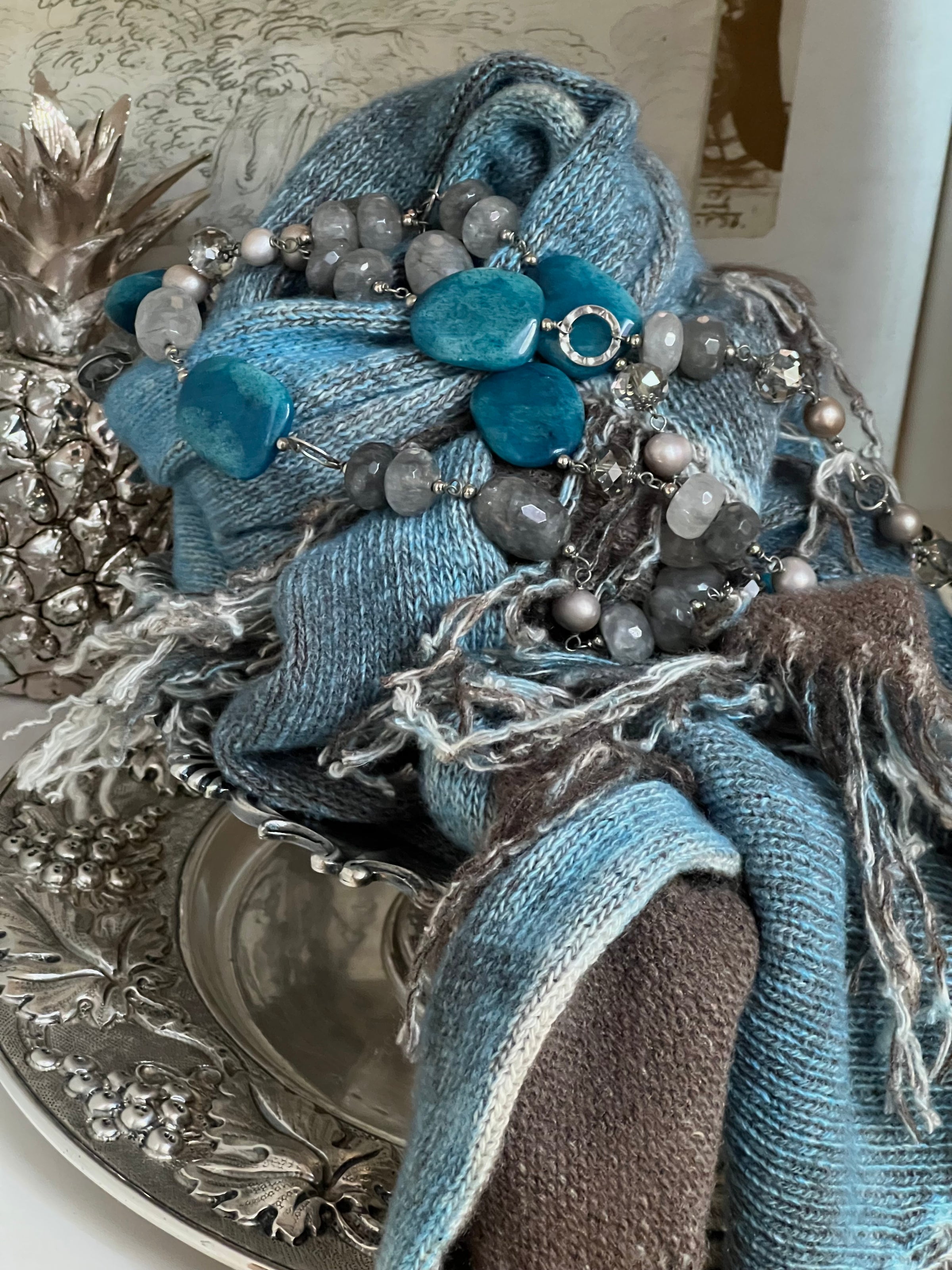 SCIALLE AEROGRAFATO TURCHESE-CIOCCOLATO 🖤 "L'IRRESISTIBILE"