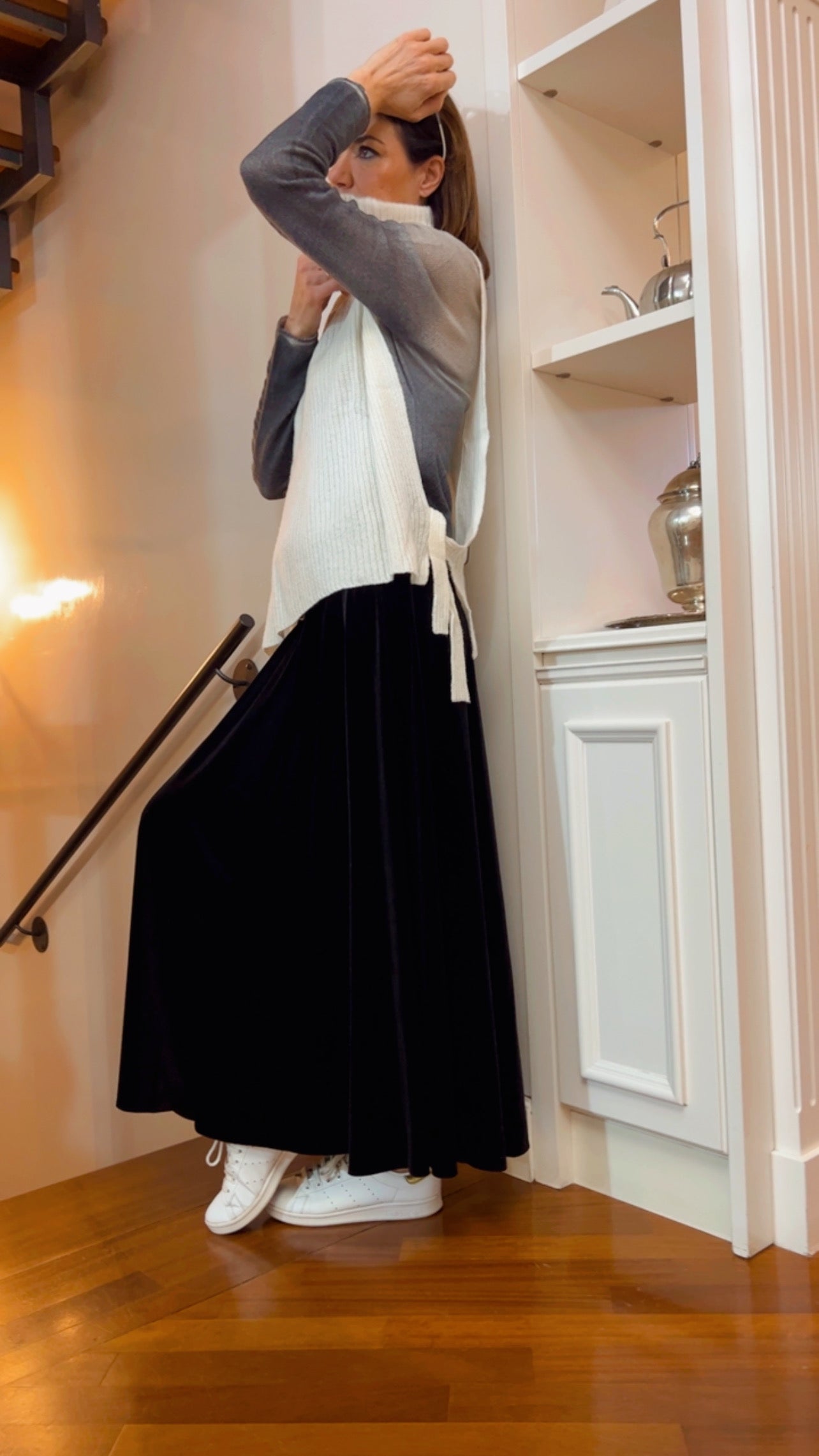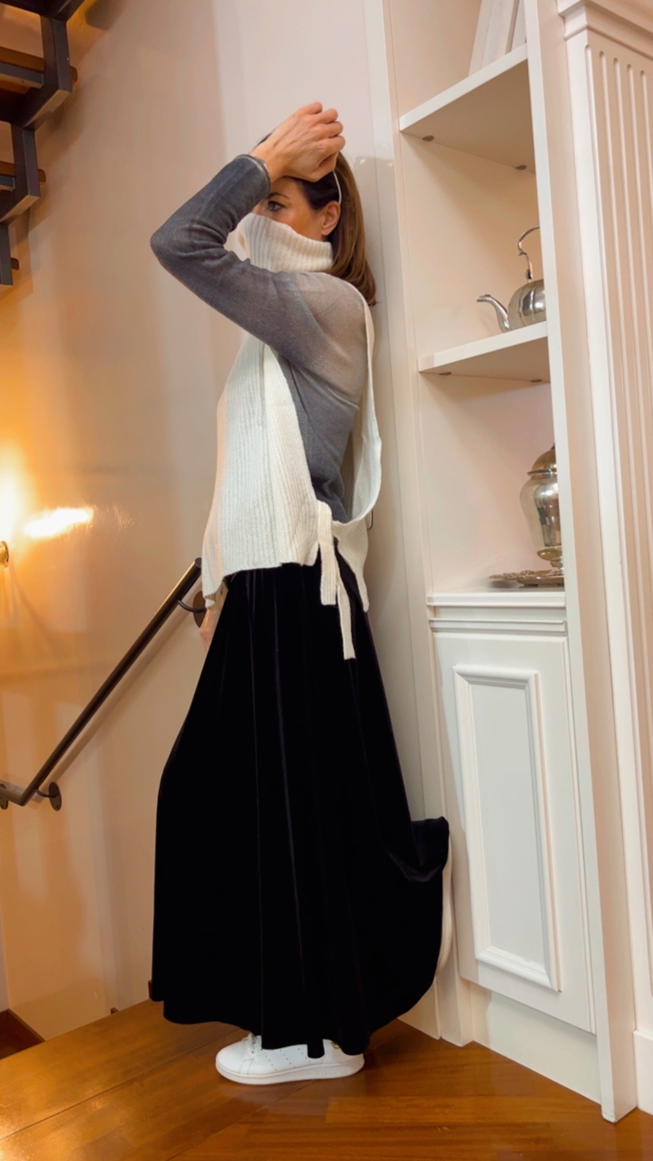 Portalo over, come maxi maglia. Oppure stringi i laccetti e trasformalo in un mini pull.