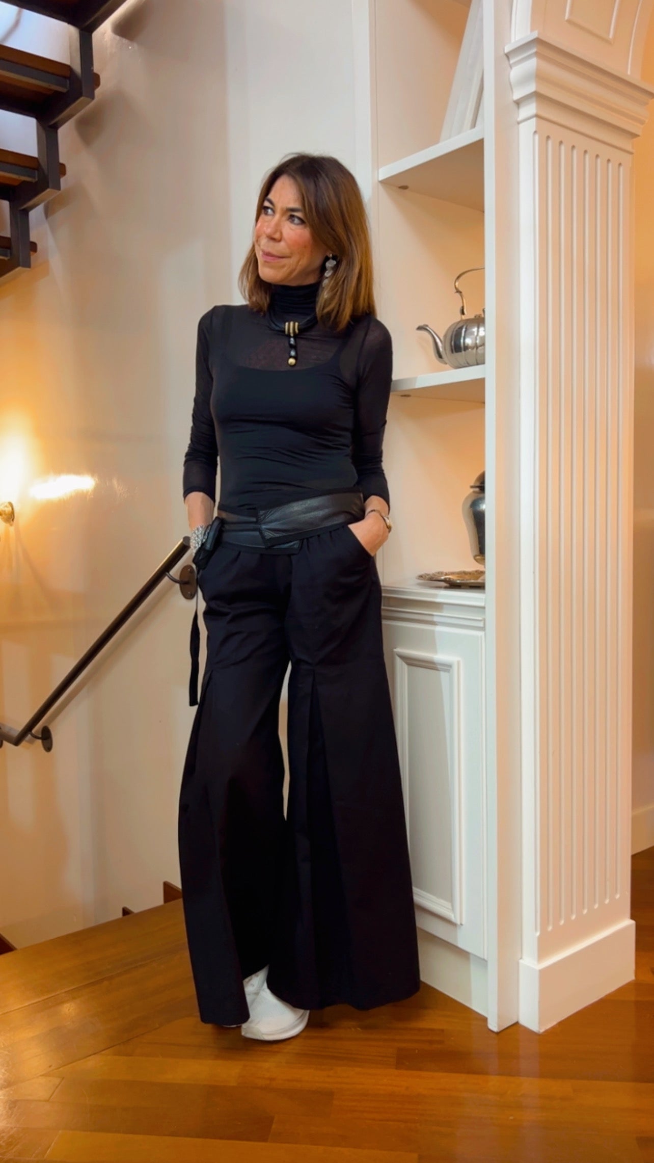 una vestibilità morbida e avvolgente, che valorizza la tua silhouette senza costringerla. È un capo che si muove con te, che segue ogni tuo passo con leggerezza, donando una sensazione di libertà elegante e naturale.