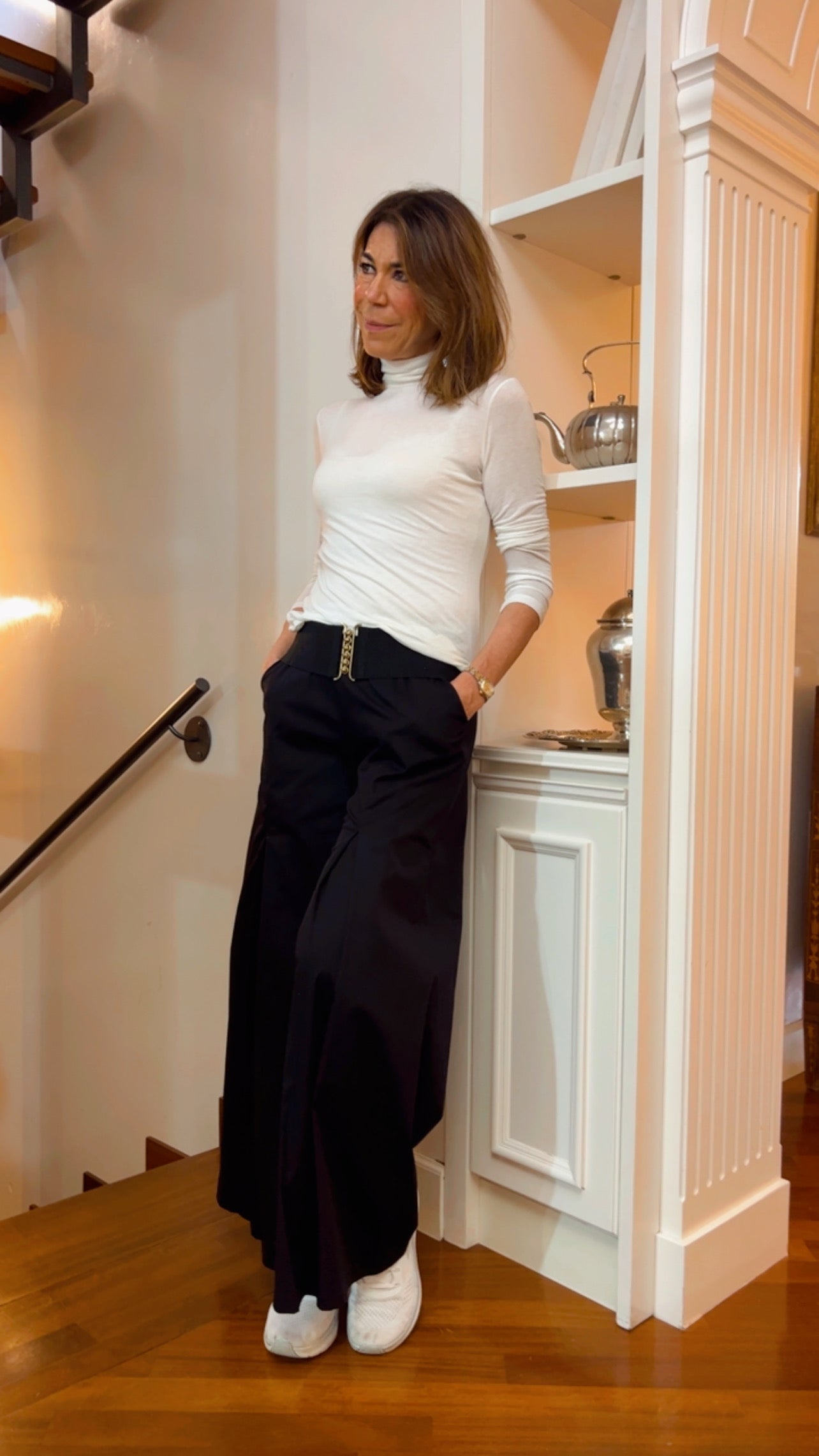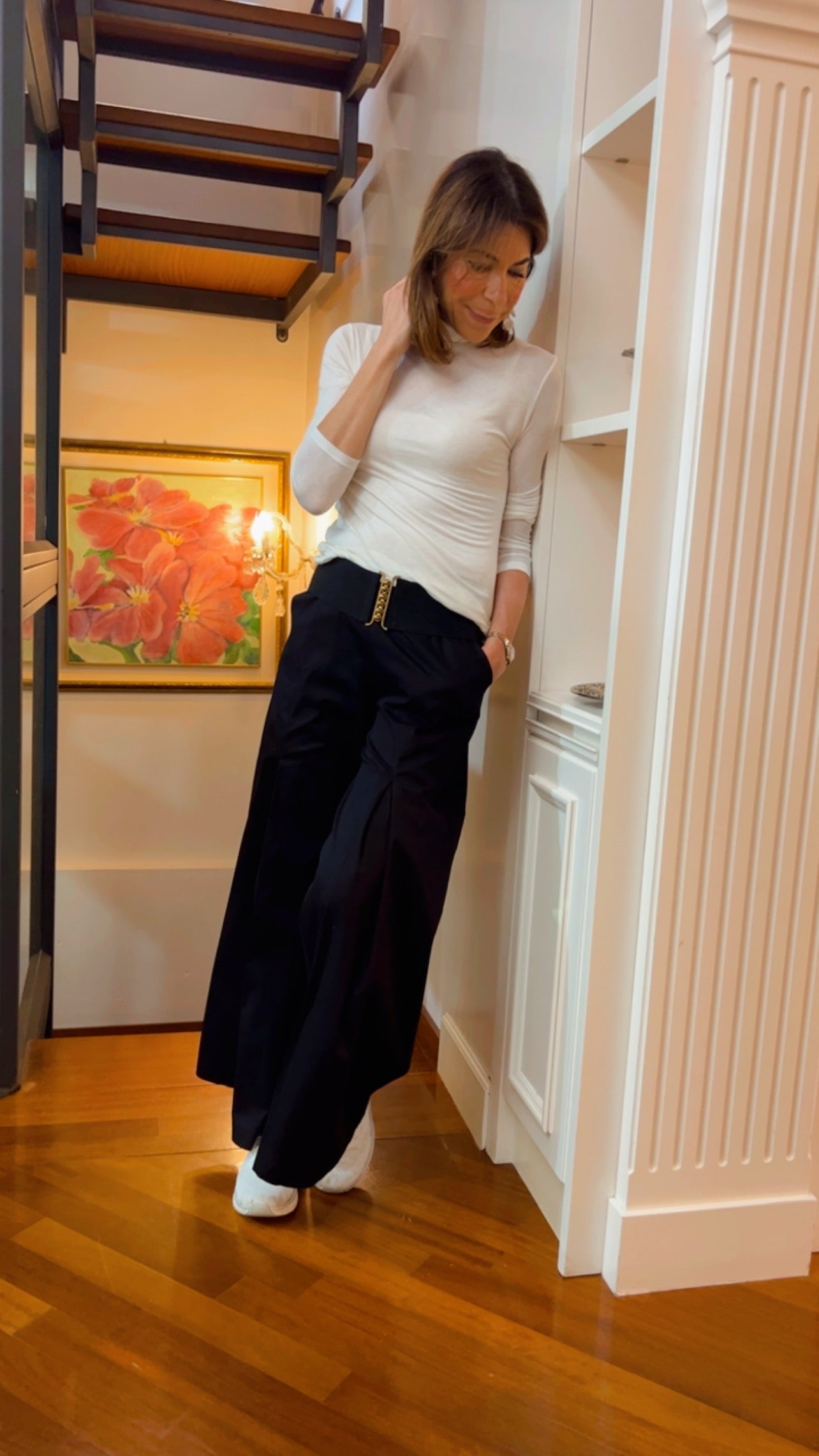 una vestibilità morbida e avvolgente, che valorizza la tua silhouette senza costringerla. È un capo che si muove con te, che segue ogni tuo passo con leggerezza, donando una sensazione di libertà elegante e naturale.