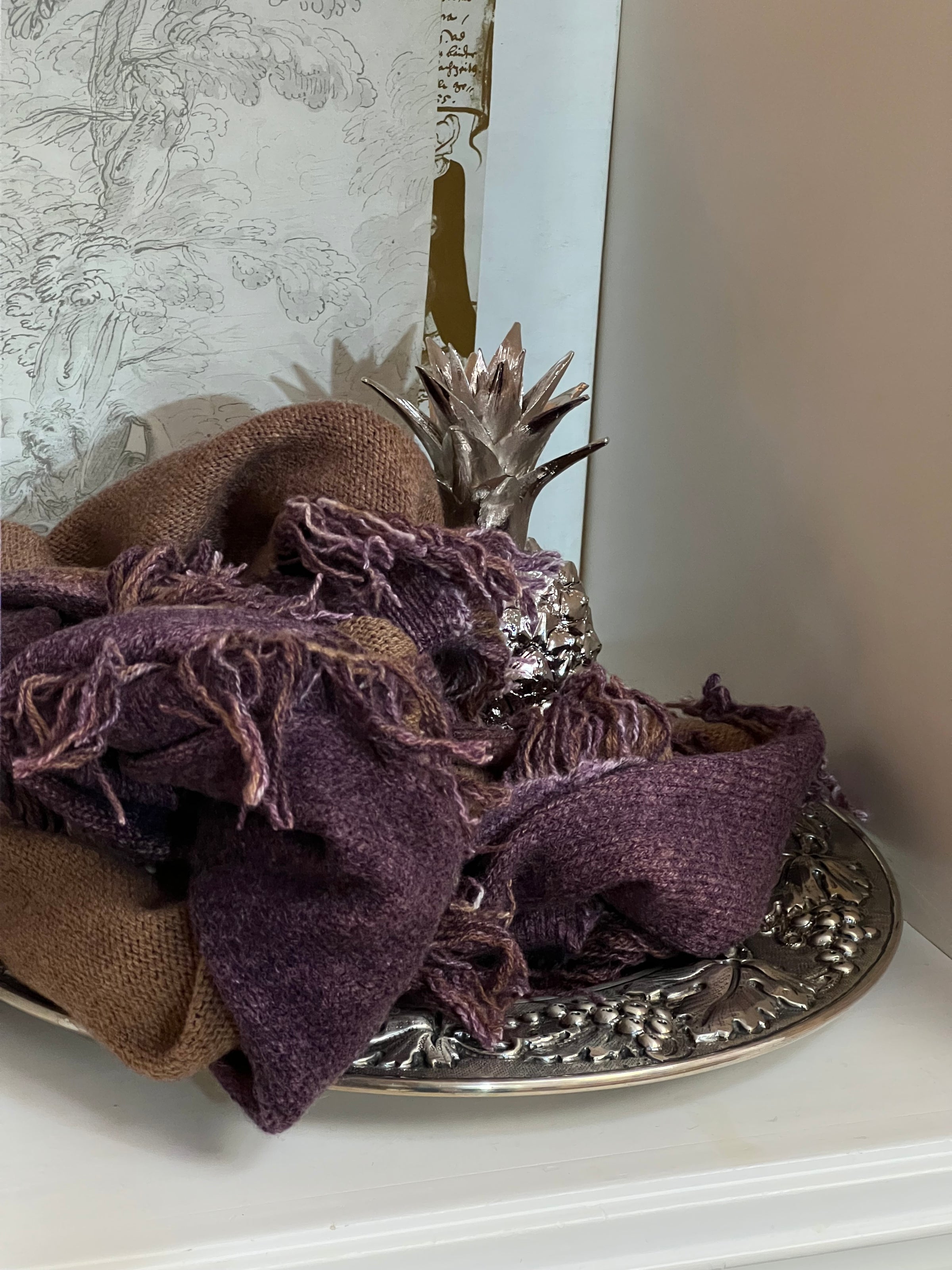 Il cashmere impalpabile e pieno accarezza la pelle come un soffio caldo, mentre il colore racconta emozioni in movimento: profondità, luce, mistero. Indossarlo è come avvolgersi in un dipinto, sentire l'arte che respira insieme a te.
