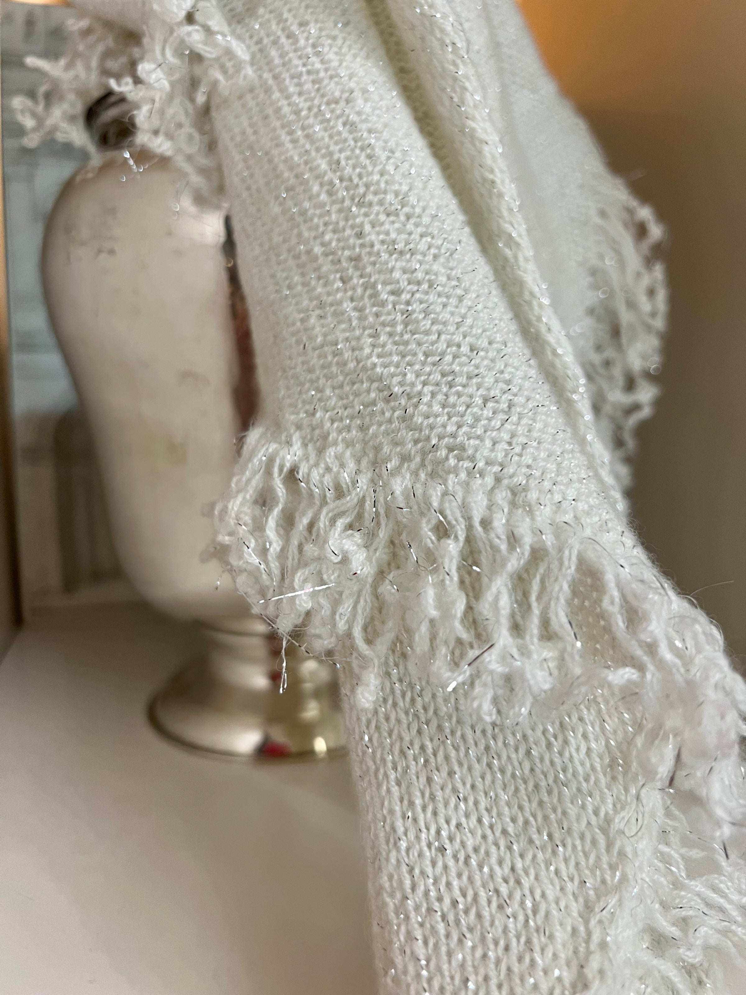 SCIALLE CASHMERE PANNA & LUREX ARGENTO