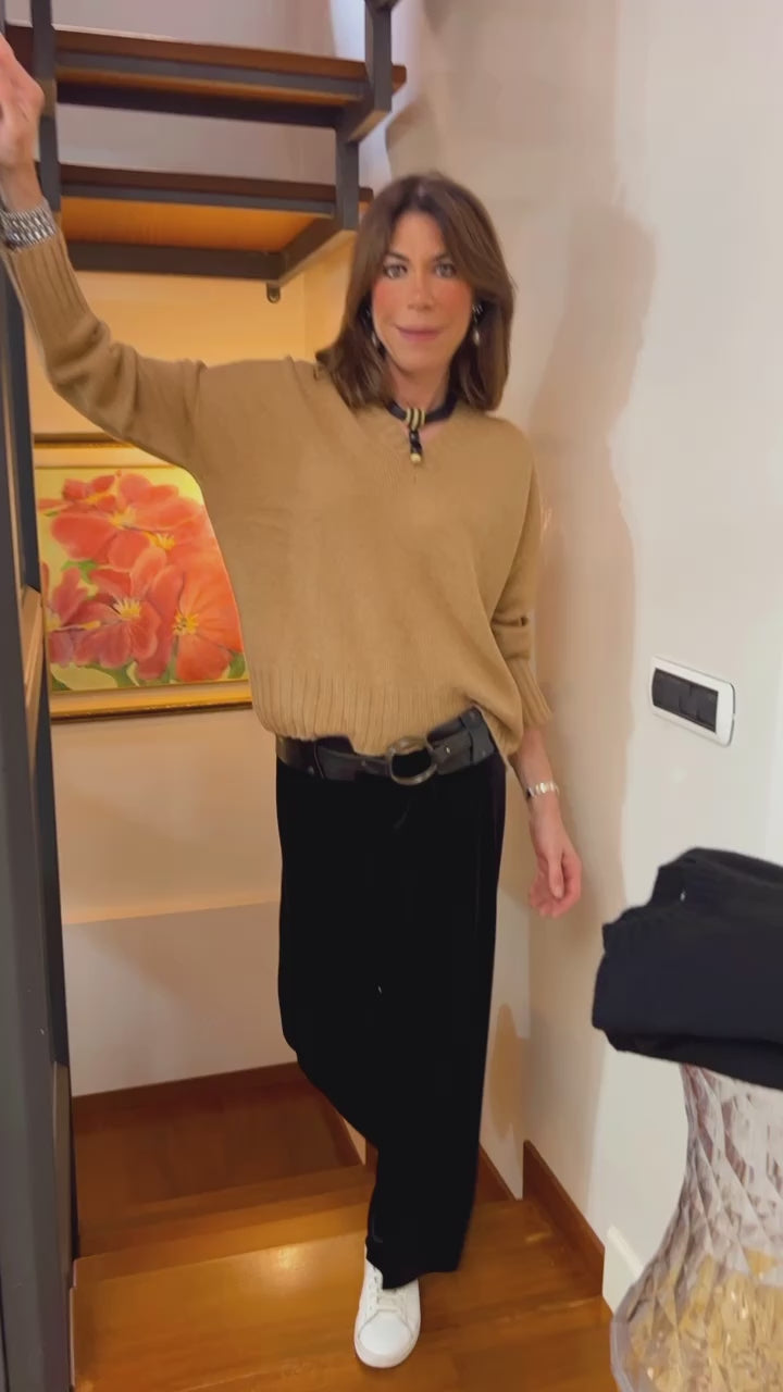Uno scollo V oversize che ti avvolgerà con una sensazione di meravigliosa morbidezza. Estremamente soffice, impalpabile, sarà amore appena lo indosserai